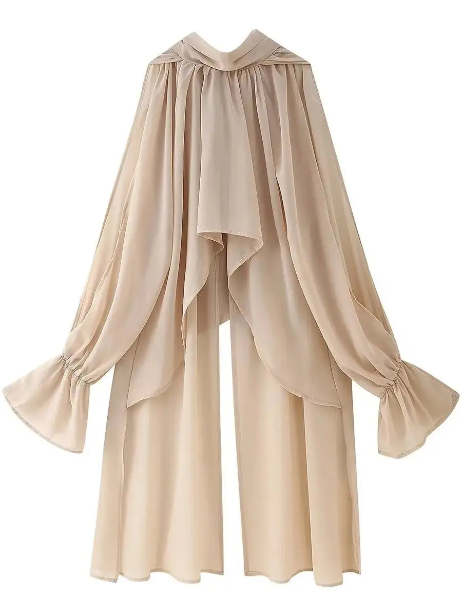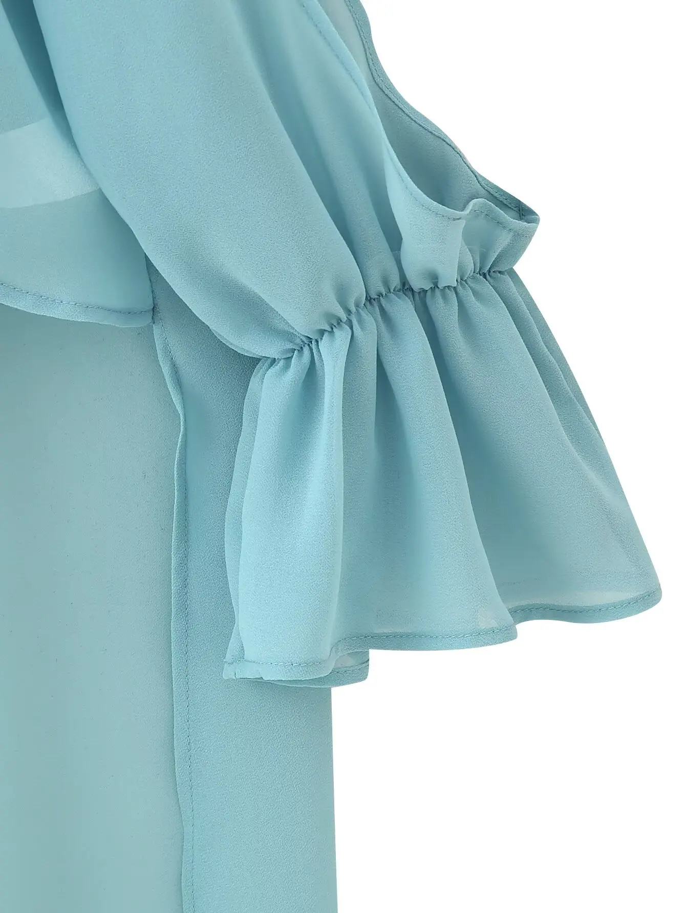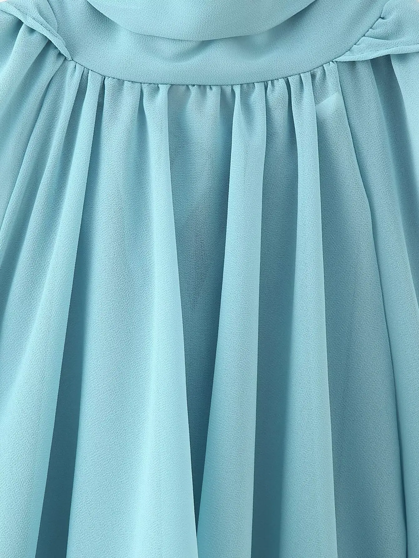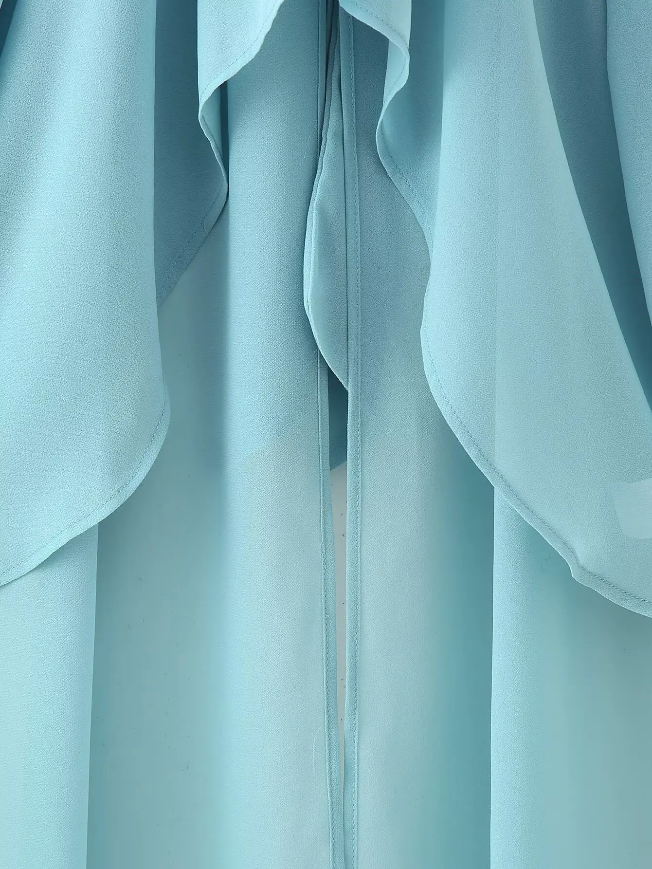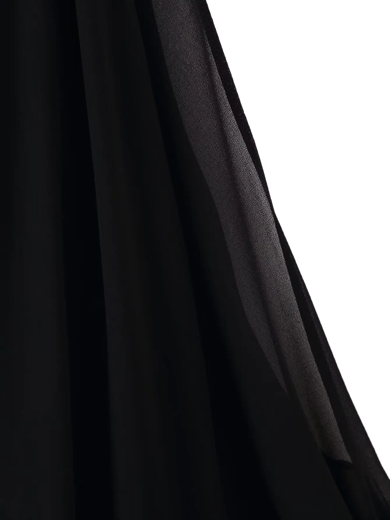 2025 Summer Women's Vintage Translucent Black Flare Sleeve Ruffles Tierred Shirts Lady Elegant Chiffon High Neck Layered Blouses