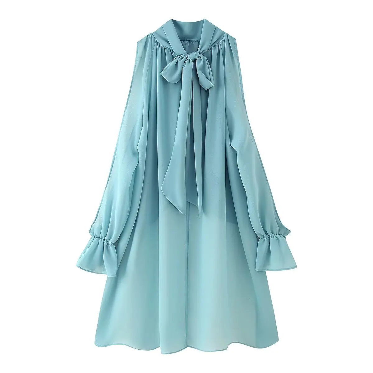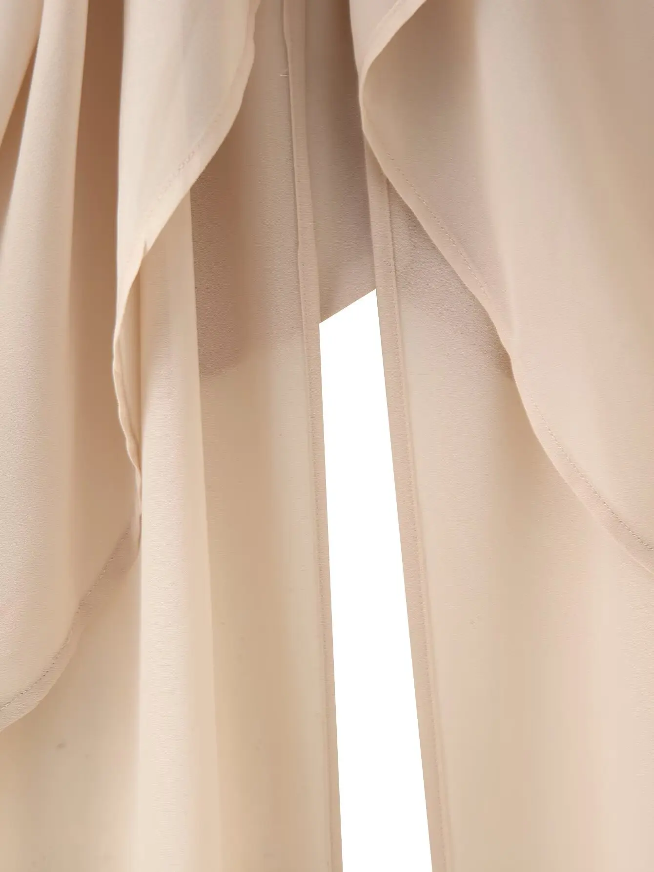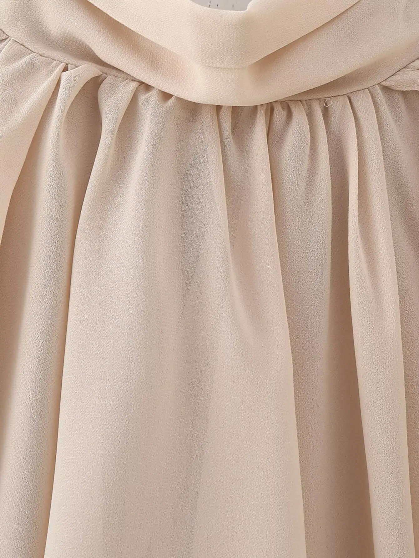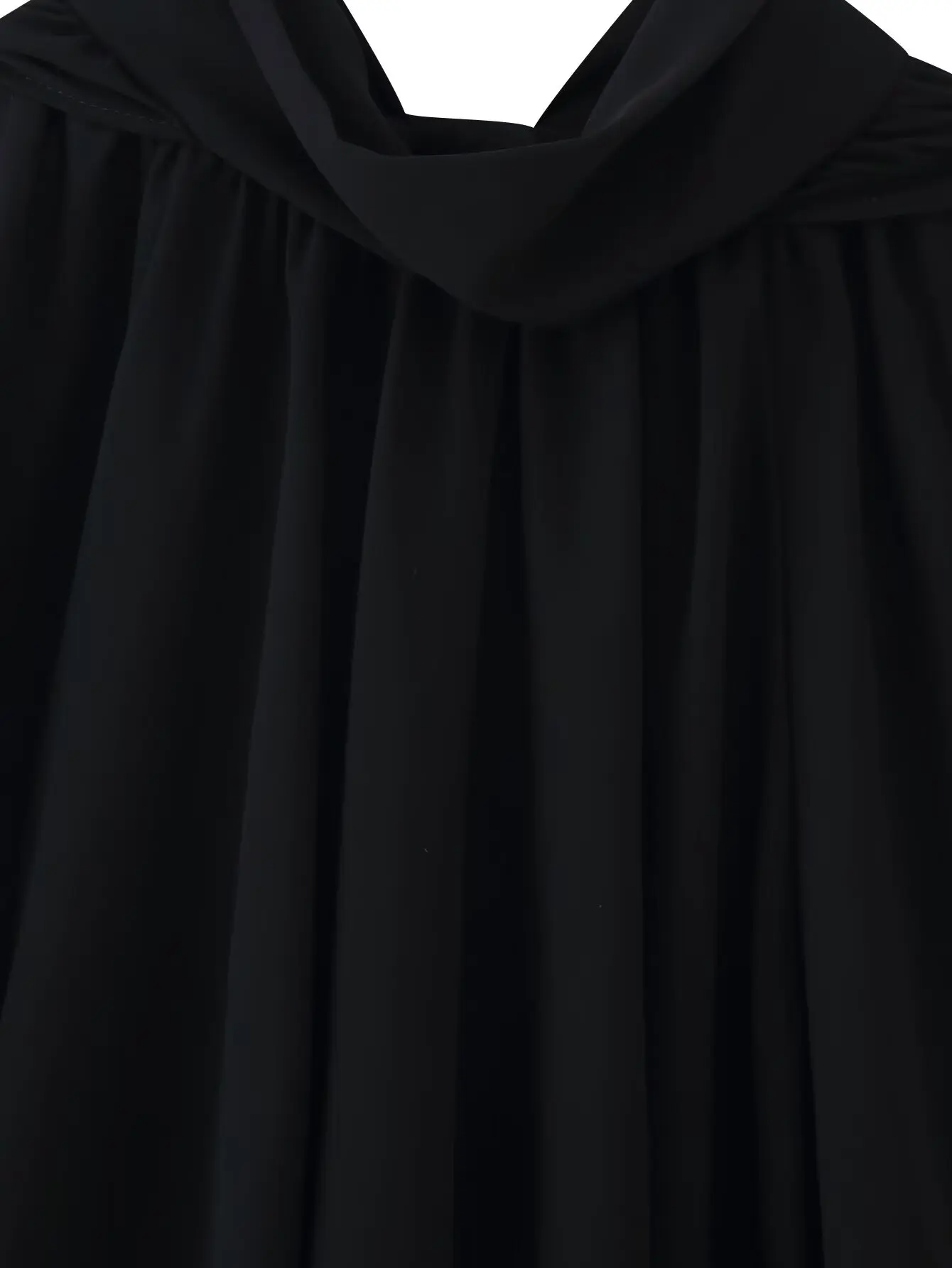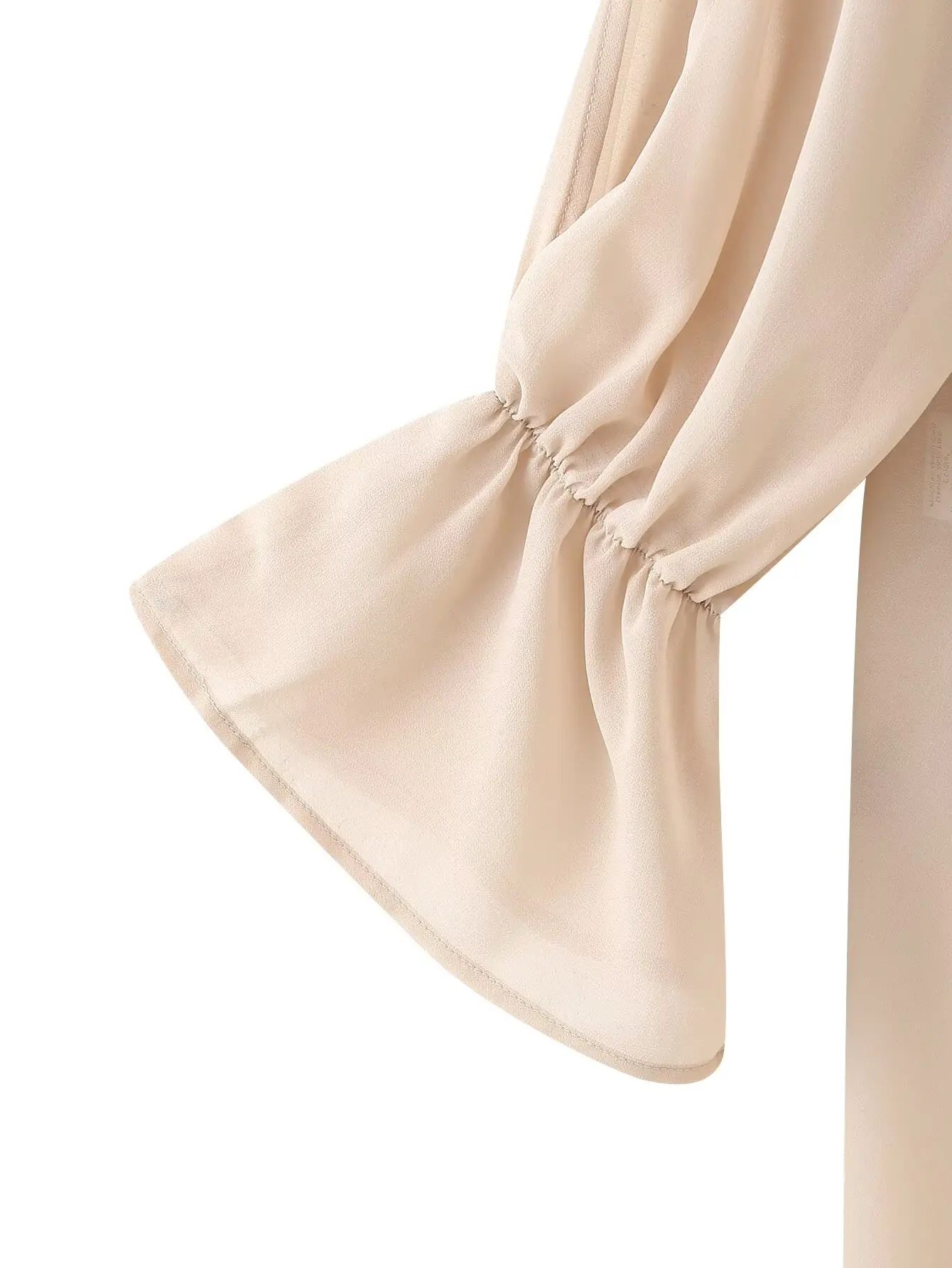 2025 Summer Women's Vintage Translucent Black Flare Sleeve Ruffles Tierred Shirts Lady Elegant Chiffon High Neck Layered Blouses