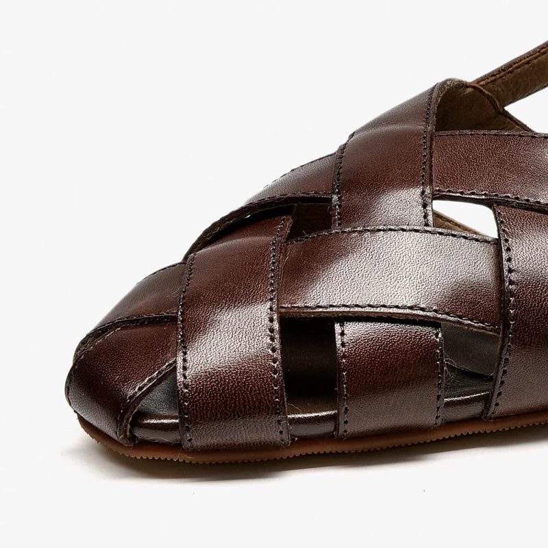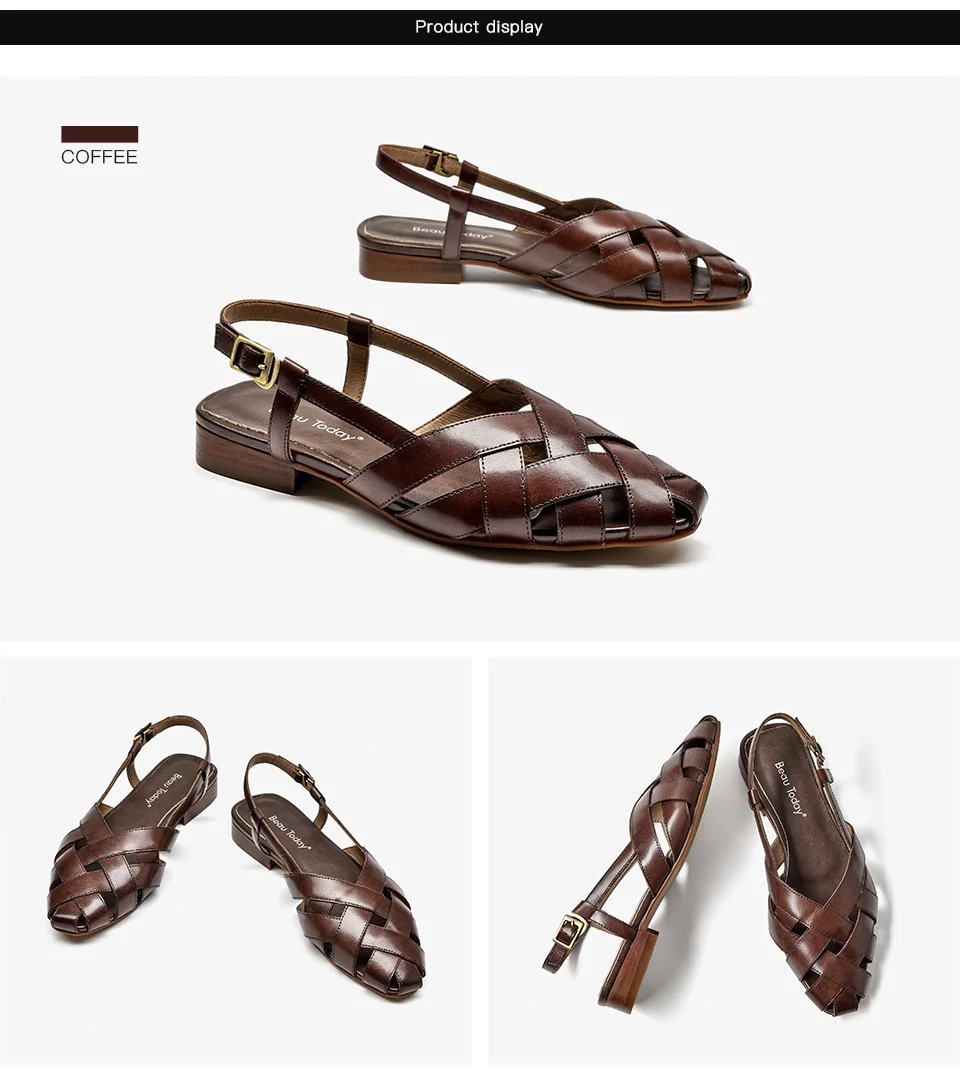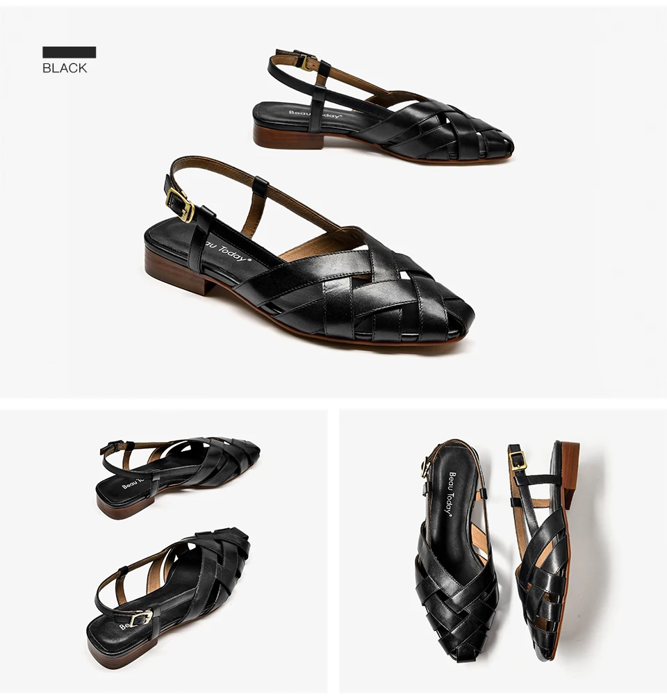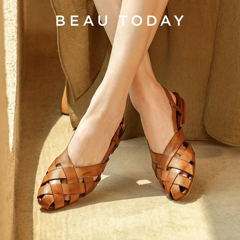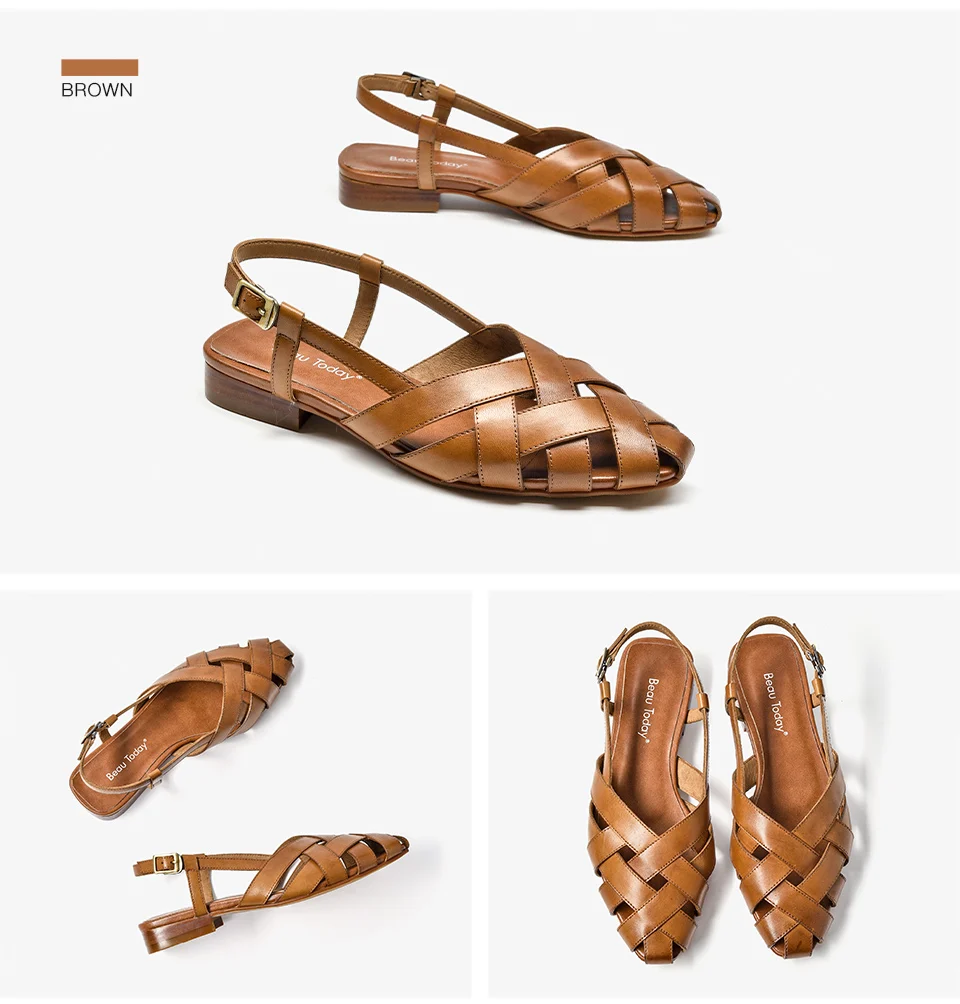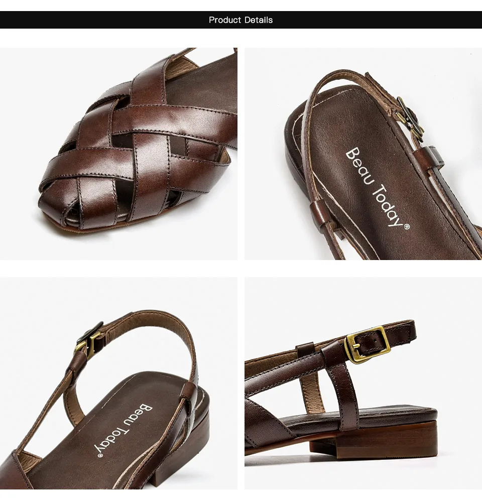 BEAUTODAY Gladiator Sandals Women Cow Leather Cross-tied Cover Pointed Toe Buckle Strap Flats Summer Ladies Shoes Handmade 33034