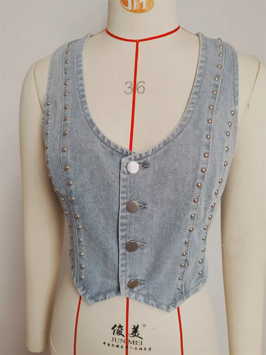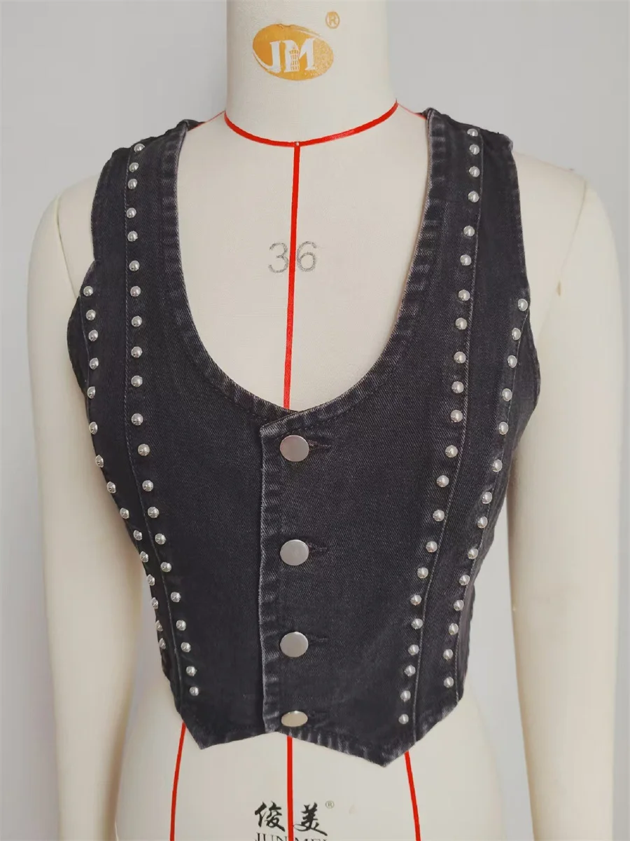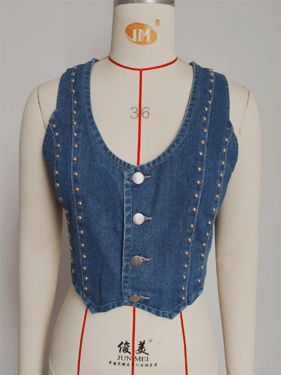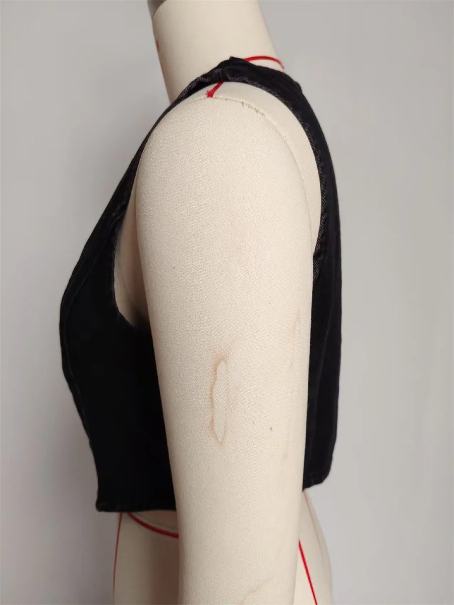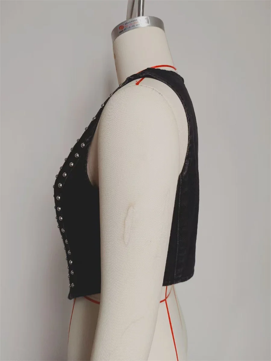 Benuynffy American Retro V-neck Sleeveless Denim Vest Women's Fashion Single Breasted Casual Streetwear Y2K Crop Jean Top
