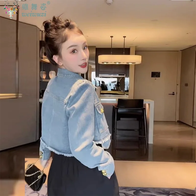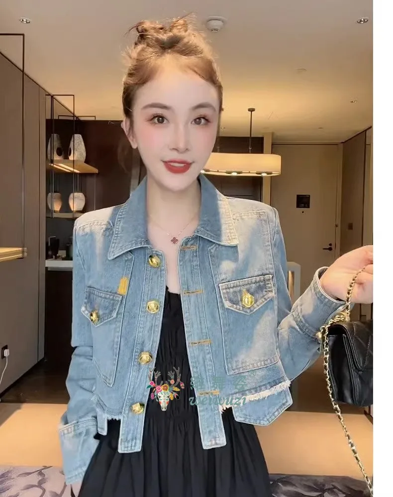 Fashion Women Short Denim Jacket Practical Pocket Causal Jean Coat Autumn Top Versatile Street Wear Long Sleeve Short Outerwear