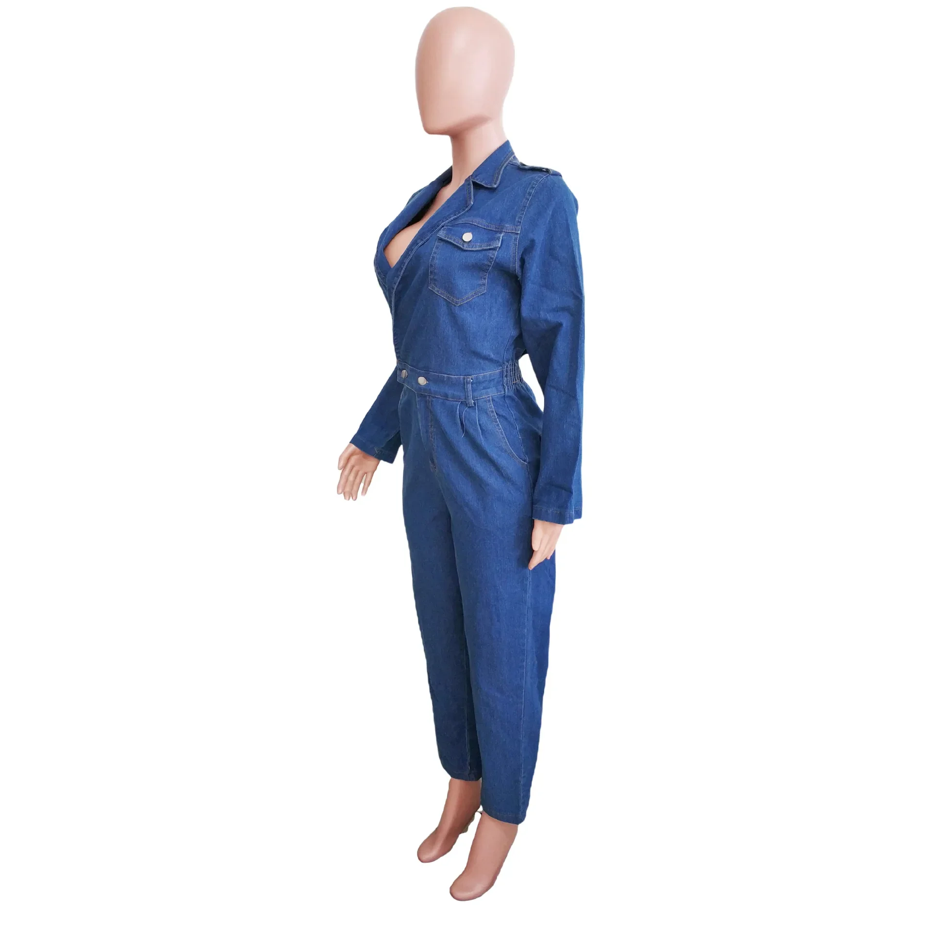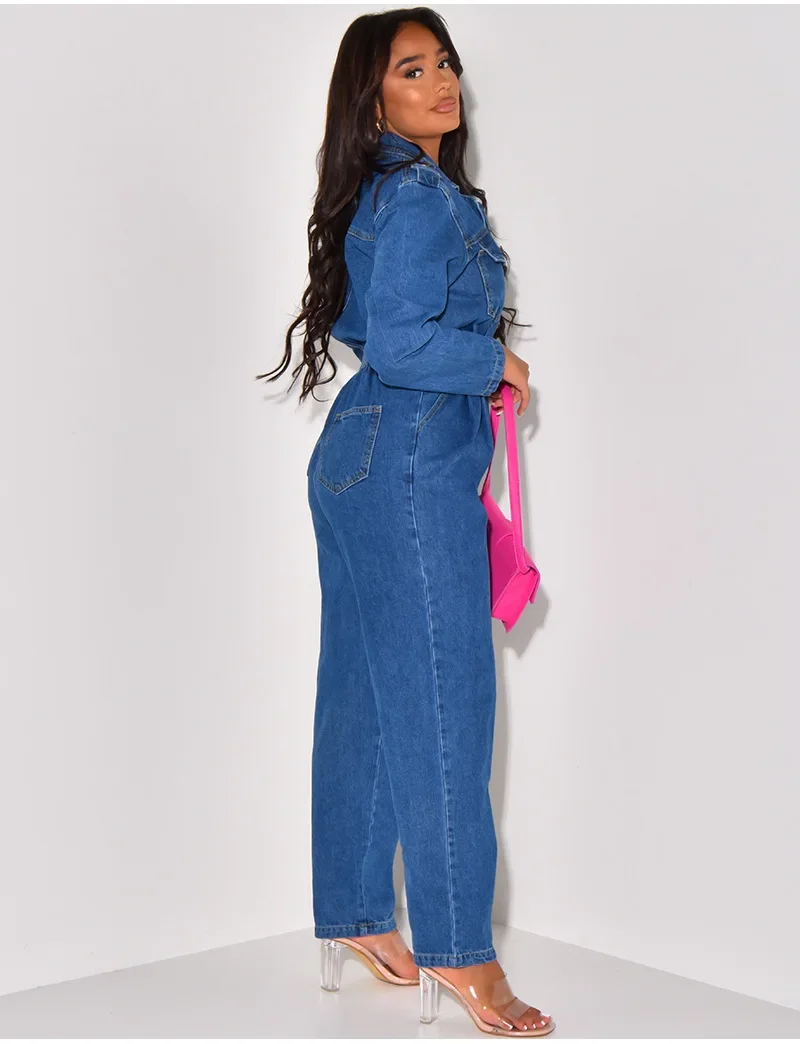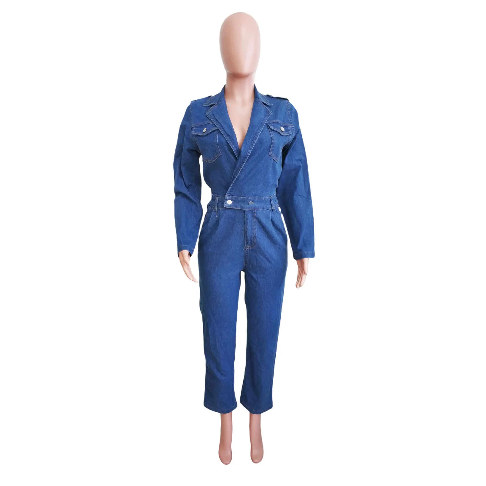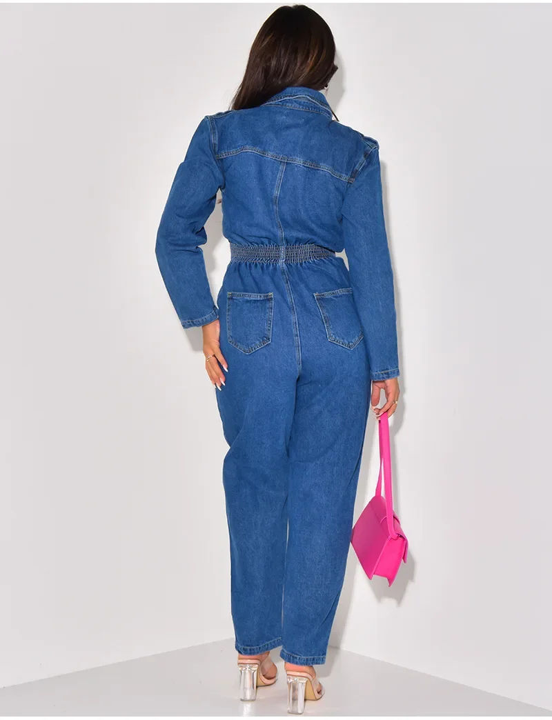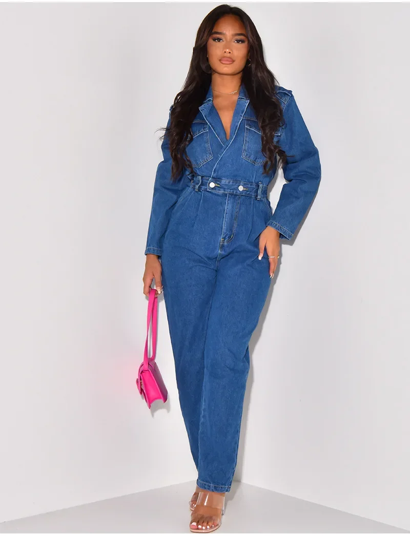 Jumpsuit Women Denim Overalls Vintage One Pieces Jeans Stretch Long Sleeve Casual Romper Overalls Streetwear Female Jumpsuits