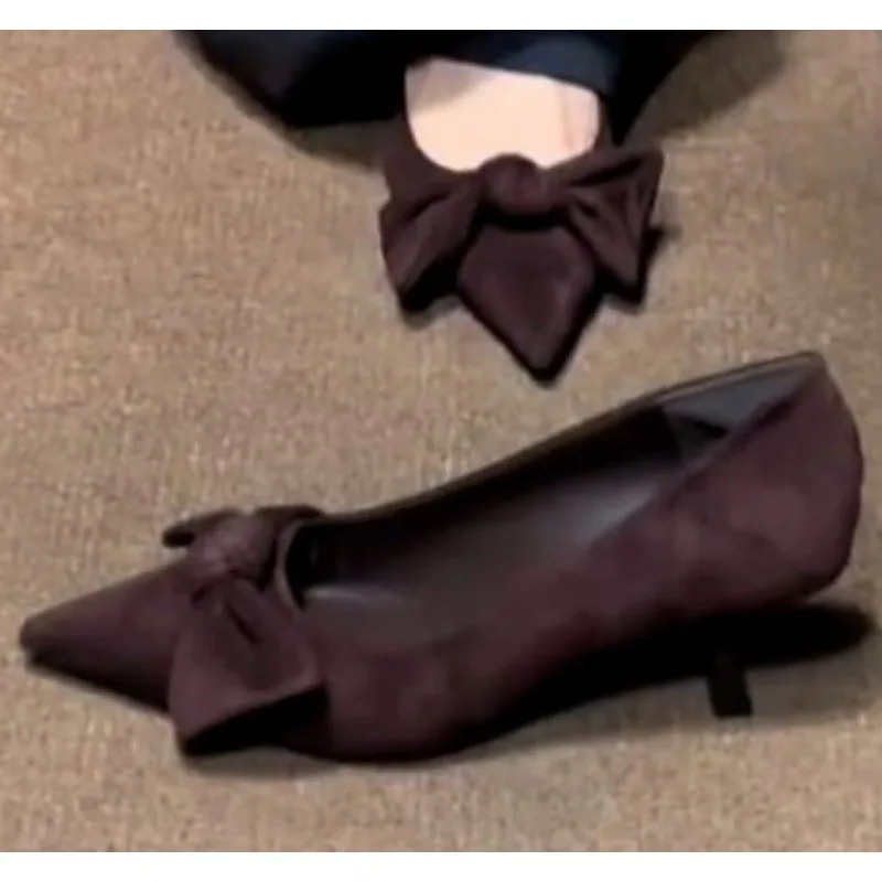 New Women's Trendy Shoes Fashion Bow Tie Slim High Heels Sexy Black Elegant Shoes Fairy Style Comfort Ladies Pumps Zapatos Mujer