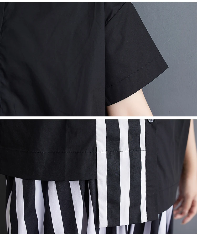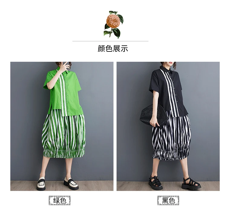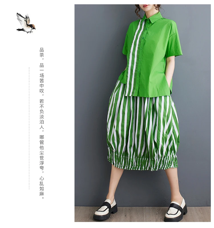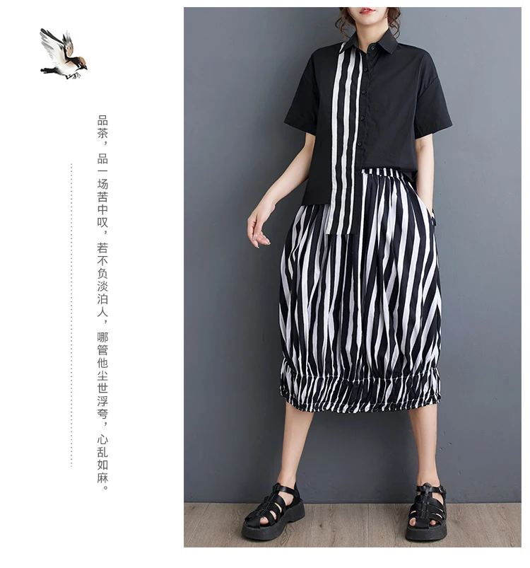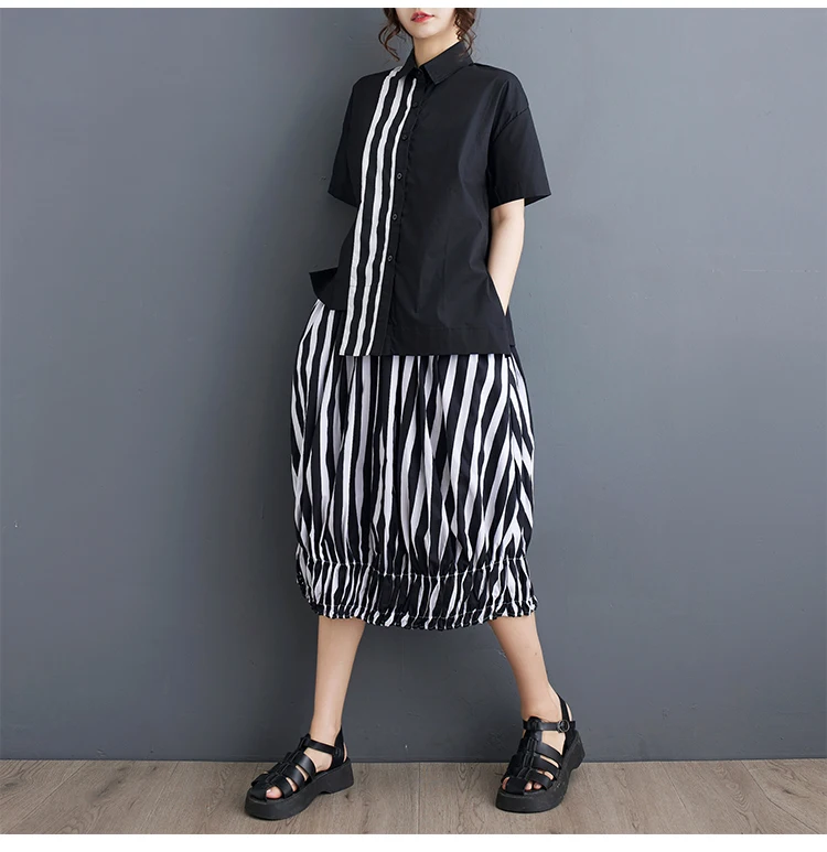 Summer Striped Print 2 Two Piece Set Women Irregular Patchwork Fashion Ladies Cropped Shirts Loose Casual Pleated Woman Skirts